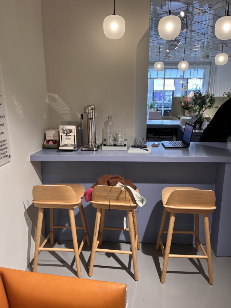 Muuto Design Store u Copenhagenu odiše smirenošću i toplinom. Prostor je uređen kao pravi interijer, a ne klasičan dućan – s puno drva, mekanih oblika i ugodne rasvjete.