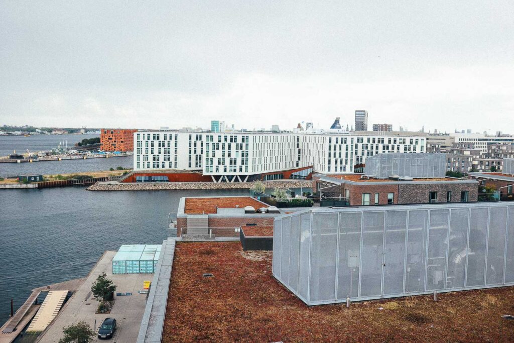 U daljini se vidi i CopenHill, zgrada koja zimi postaje skijalište, a cijele godine simbol ideje da arhitektura može biti funkcionalna, održiva i zabavna u isto vrijeme.