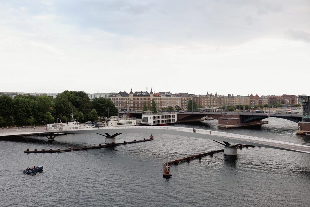 Most je odlična točka za kratko zadržavanje – pogled prema vodi, ljudima koji prolaze i arhitekturi s obje strane kanala savršeno sažima duh Copenhagena: funkcionalno, estetski promišljeno i otvoreno svima.