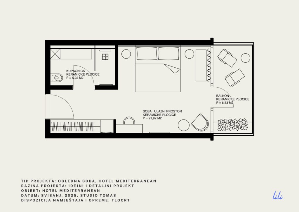 Trenutno završavam drugu godinu programa za dizajnera interijera u školi Callegari. Nakon prve godine, koja je bila posvećena stambenim prostorima, druga godina otvara vrata složenijim projektima – poslovnim i javnim prostorima poput hotela, restorana i trgovina. Upravo jedan takav projekt – uređenje hotelske sobe – bio je i naš glavni zadatak ove godine. Pokazala sam vam već pripreme za 3d modeliranje i renderiranje, a to su CAD nacrti i moodboard.